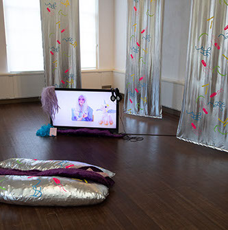 The exhibition "What Do You Think An Aquarium Is Made For, Is It Just A Container For The Soul?" is a mix of video and installations, with a focus on dance, ecosystems and femininity/gender.
