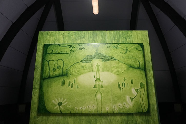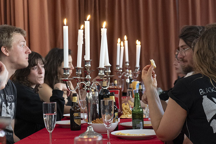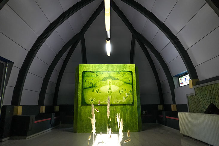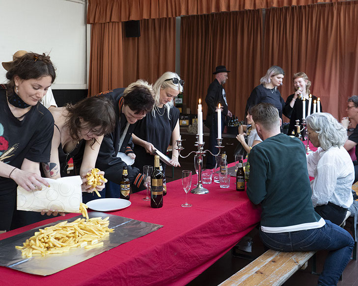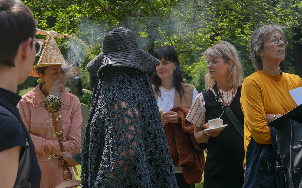 There is nothing so inevitable and elusive about life as death. No one is immortal and there comes a time for each of us to pass. With what sauce shall we be eaten?* is an exhibition at the Esserveld cemetery and former auditorium. Anna Reutinger, Isabel Cavenecia and Yair Callender developed new artworks during a five-week residency at the cemetery. They studied the cemetery and funerary culture - all the activities, structures and meanings surrounding death.