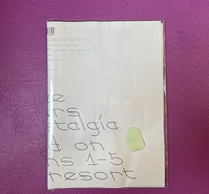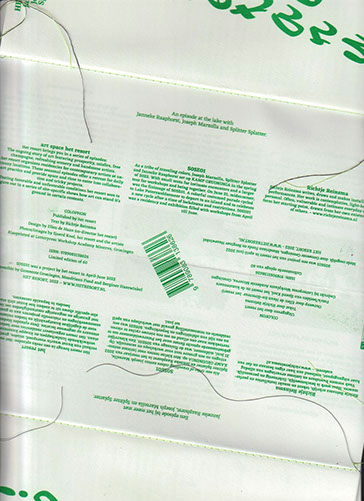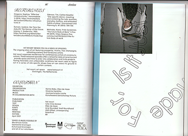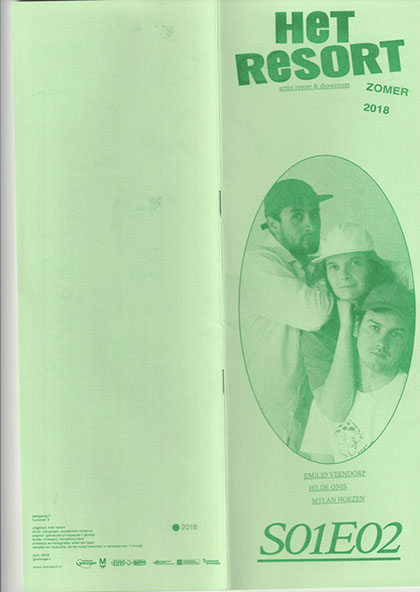 APRIL, 2023 / ISBN: 978-90-831386-9-5 / Pages: 60 / Size: 21x29.7cm / Edition: 100 / Fonts: Blister (by Maarten van Maanen), Letter Gothic STD / Print: Repro.nl / Design: Ellen de Haan / Writers: Anna-Rosja Haveman, Vanessa van 't Hoogt, Iulia-Irina Aionesi, Richtje Reinsma / Photos: Hache, Lisa Jasperina Bommerson, Sjoerd Knol, Tom van Huisstede, Claudia Moraru, Ellen de Haan and the artists / Self-published by het resort