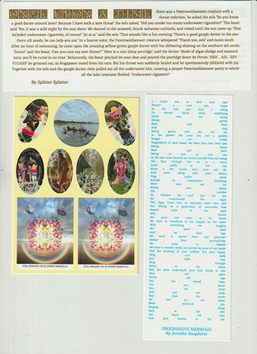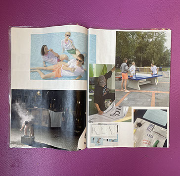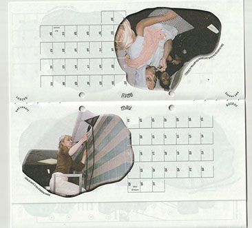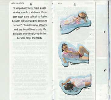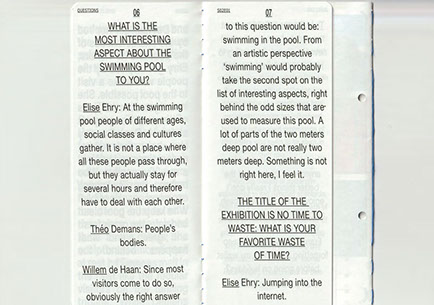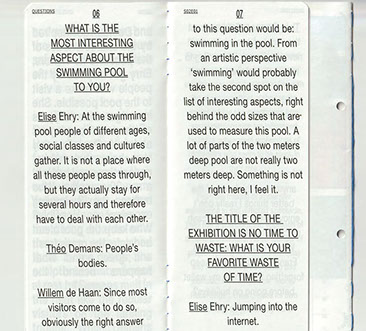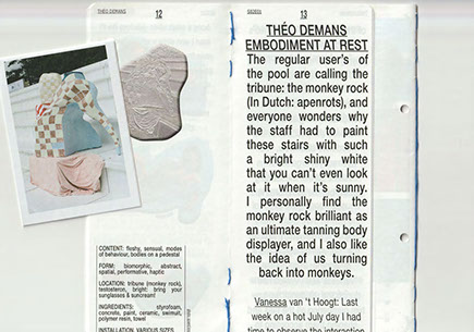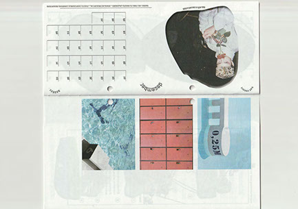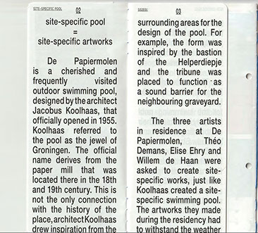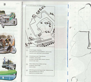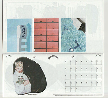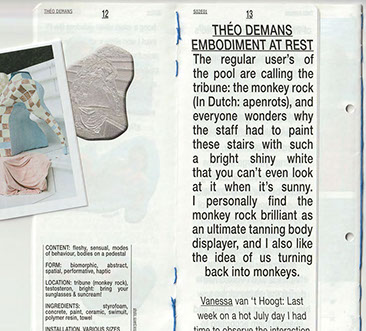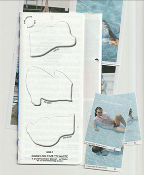 A publication about artists at a swimming pool including stickers (!) and a calender (!)