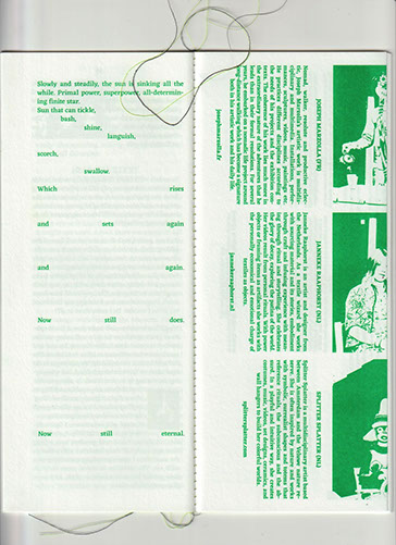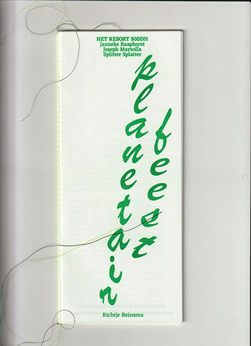 November, 2022 / ISBN: 9789083138626 / Dutch & English / 34 pages + extra's and stickers / 10,5x25 cm / Edition of 60 / Risoprinted at Letterpress Workshop Academy Minerva, Groningen / double Hand-bound / Self-published by het resort / design: ellen de haan