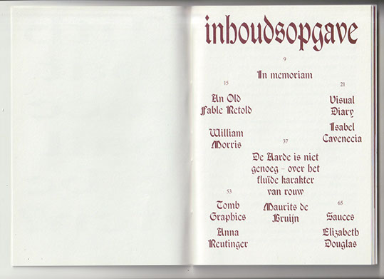 July, 2024 / isbn: 978-90-831386-3-3 / pages: 80 / size: 14x20cm / edition: 100 / fonts: Times New Roman & R41 Gotico / print: Terry Bleu / design: Ellen de Haan / writer: Maurits de Bruijn / texts: Daphne Verberg, William Morris, Elizabeth Douglas / images: Isabel Cavenecia & Anna Reutinger / self-published by het resort