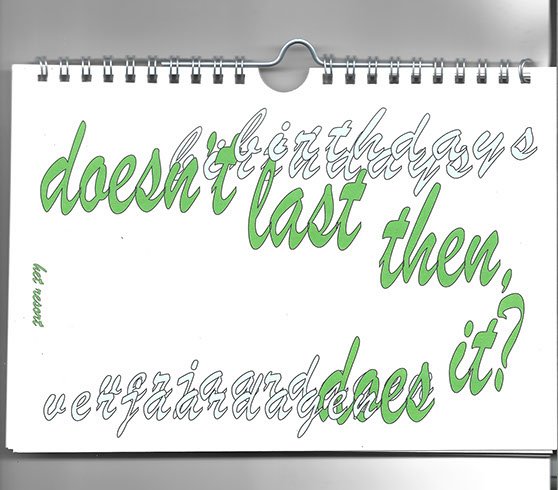 sep 2019 | size: 11x21 cm / pages: 36 (calender included) / print: digital B&W + color stickers / self-published by het resort / design: Ellen de Haan