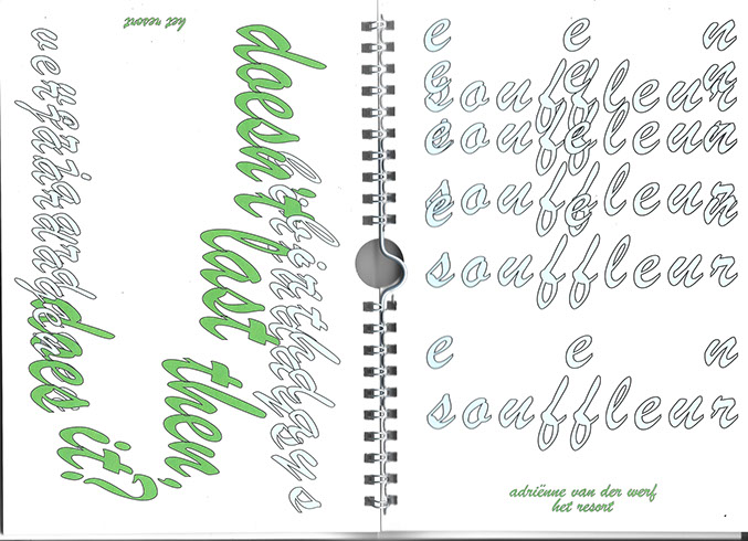May, 2025 / isbn: 978-90-831386-5-7 / pages: 26 / size: a5 / edition: 50 / fonts: Brush Script MT & Acumin Variable Concept / language: Nederlands / writer: Adriënne van der Werf / design: Ellen de Haan / editor: Marion Bruinenberg / self-published by het resort
