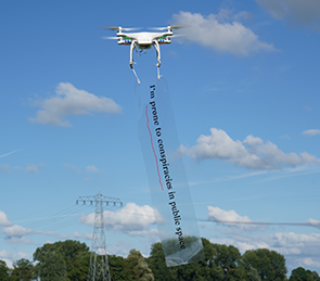 Na mijn hypnose-sessie werd het duidelijk dat ik de typische luchtreclame moest nabootsen, maar dan met een drone in plaats van een vliegtuig, omdat die lang op één punt kunnen blijven hangen. Ik streefde ernaar dat mensen er langs of onderdoor zouden lopen, alsof het direct verwijst naar hun gedachten en gevoelens. Ik vind het vermakelijk dat de lucht-banieren vaak transparant zijn, om een magische illusie te creëren van een boodschap die van bovenaf komt.