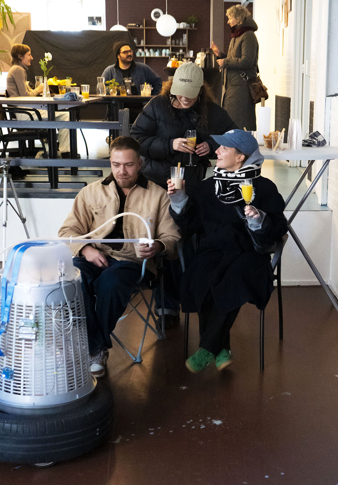 Groningen-based artist Igor Bobeldijk organised a brunch & wellness on January 18th as part of Talent van Hier. Slumped you could enjoy a mimosa or delicious nutritious porridge. The robots were controlled by the operators to serve the visitors from a distance. When the robots were not actively working, they moved freely to the ambient sci-fi music of Adriaan Bon, aka Zachte Man, who pampered the ears with his keyboard