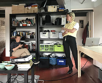 “Online presence is an important part of presenting oneself as an artist. In week two the artist got the homework of googling themselves and each other. The results were discussed in Ellen de Haans online presence class. Klaudija, Vanina an Jochem got tips on how to improve their websites. Anna-Fleuri really needs to make a website and change her DEPOP name (although it is nice to see what slippers she likes.)