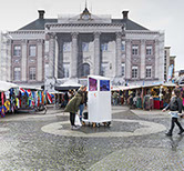 This year the midseason program took place at the Tschumi pavilion. The recently graduated artists Jochem van den Wijngaard (FMI, painting), Klaudija Ylaite (Academie Minerva, fine arts) and Vanina Tsvetkova (FMI, MADTech) created works based on their views of public space in different parts of the city and a overview at het Tschumipaviljoen. Anna-Fleuri Wolters (Minerva Academy, design) conceived and created all the expressions.