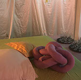 Het resort would like to highlight the former function of the building that existed so clearly for the gay community, but was also hidden from the public behind boarded-up windows. The hiding but also advocading of intimacy brings a sense of duality to this sauna episode.