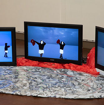 The exhibition "What Do You Think An Aquarium Is Made For, Is It Just A Container For The Soul?" is a mix of video and installations, with a focus on dance, ecosystems and femininity/gender.