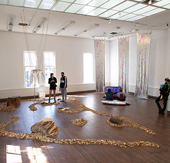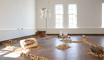 Eva Susova involves the female voice in her work. In Pictura she shows her installation 'The Veiled Lady', consisting of organic materials such as branches, wood chips and a hanging mask, in combination with a sound composition that combines vocal recordings into a non-linear onomatopoeic story.