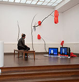 Her work investigates the politics of the body, movement, voice- the corporeality, through the production of experiences. These experiences often allude to imaginative and speculative fiction. Her research centers around the female voice and the creation of ecosystems. Her work is necessarily and consciously in a dialogical practice with the intersectional feminist discourse.
