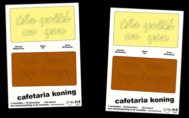 In 'The yolk’s on you', the artists’ works become part of the rhythm of the snack bar, a space layered with meanings of language, time, and taste. Because what lies beneath the surface of the brown-yellowish tiles, the display case of uncooked snacks, and the smell of frying oil?