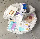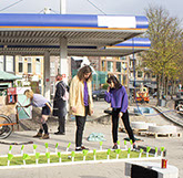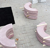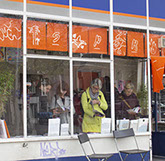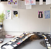 het resort asked Philippe Wolthuis en Maaike Knibbe to create settings to present the zines and prints in a different way then a market and offer a different kind of terrace. Outside is inspired by construction sites and inside by sushi bars.