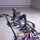 Watch the mini-documentary below about his working period, including: conversations about his research into the ritual and religious aspect of club culture and the relationship between materiality and movement while making sculptures, his performance 'DEPOSITION' in the Grand Theatre Groningen and the dystopian words at 1:10 min: "I think Holland is like 9 days behind from what's going on in Italy, but it's gonna happen.".