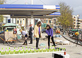 Het resort asked Philippe Wolthuis (S01E01) en Maaike Knibbe (S01E01) to create settings to present the zines and prints in a different way then a market and offer a different kind of terrace. Outside is inspired by construction sites and inside by sushi bars.